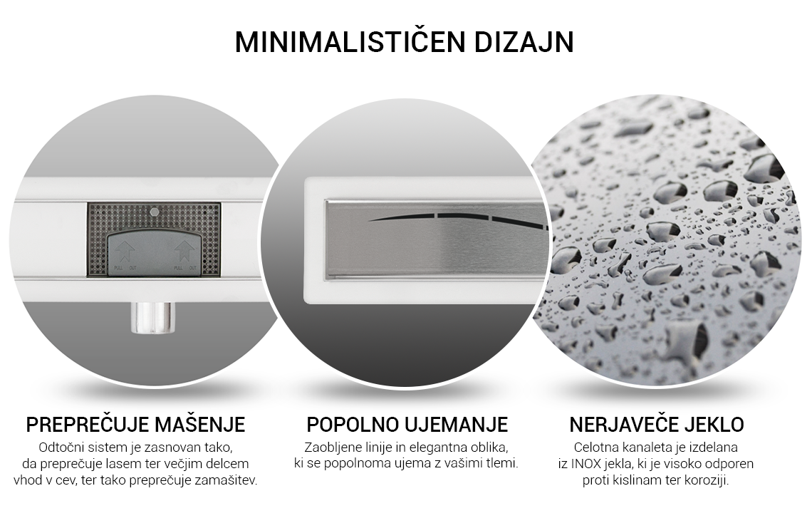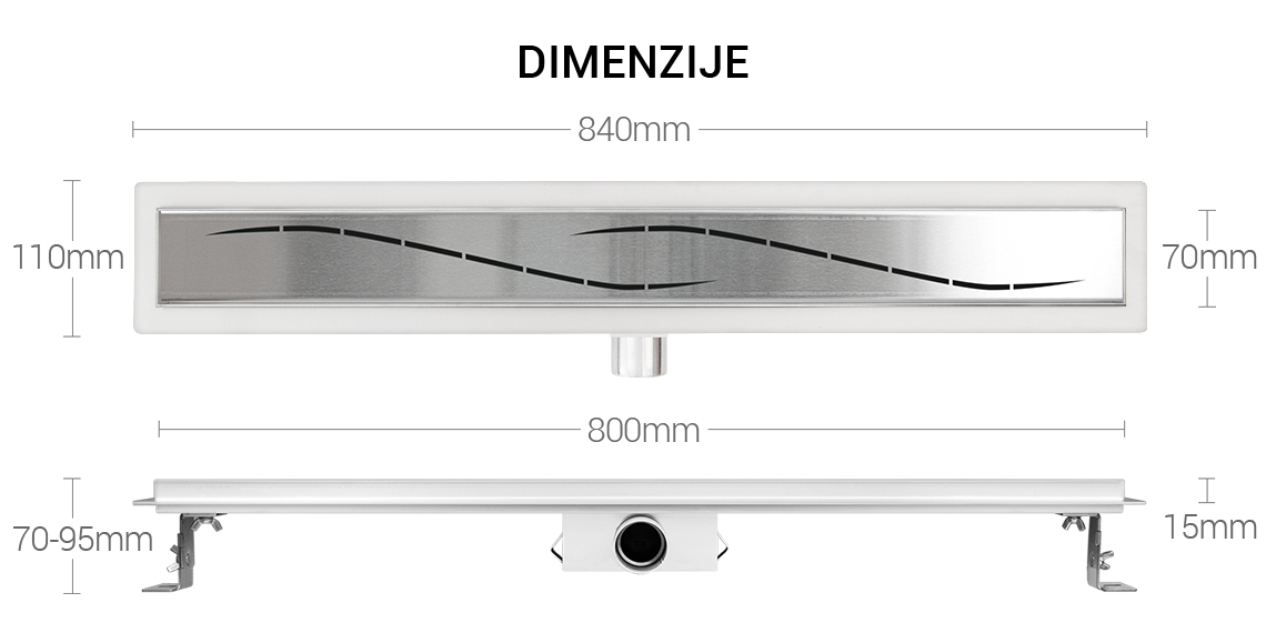 INOX ODTOK / VODOODPORNA MEMBRANA / NIZKA MONTAŽA ODTOKA / POKROV WAVE 800mm
