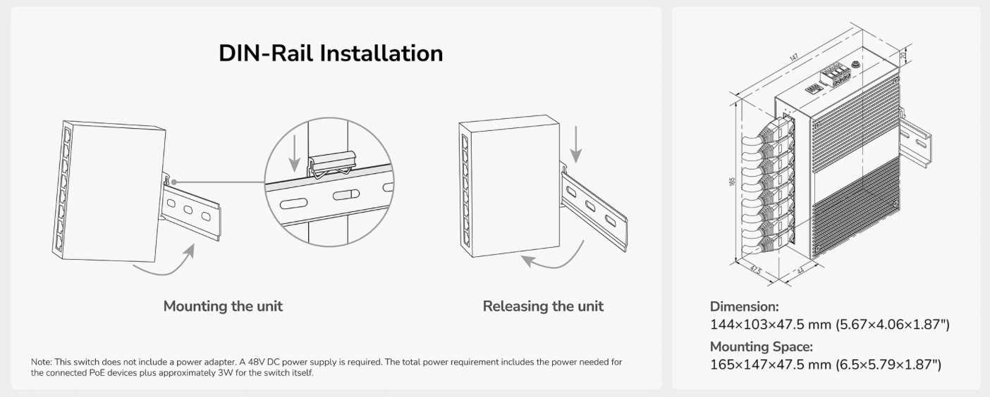 KOVINSKO OHIŠJE / 8 PORTNO STIKALO (8x Ge POE 240W ) / Zmogljivost 16 Gbps / Hitrost posredovanja 11.9 Mpps