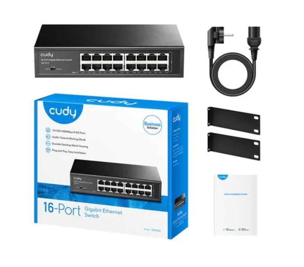 Razširite svoje omrežje z visoko zmogljivostjo. Stikalo Cudy GS1016 v2.0 je opremljeno s 16 Gigabitnimi (10/100/1000 Mbps) RJ45 vmesniki. Zagotavlja preklopno kapaciteto 32 Gbps in hitrost posredovanja 23.808 Mpps.
