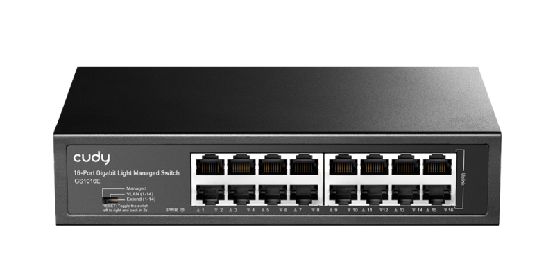 • Priključki v VLAN načinu: #1–#14 (v VLAN načinu), nastavljivi v Managed načinu za 802.1Q / MTU / Voice / Port-Based VLAN