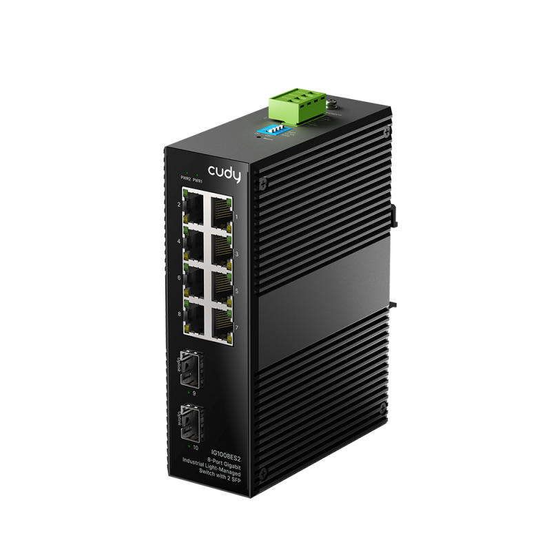 Industrijsko upravljano stikalo z 8× gigabitnimi Ethernet priključki in 2× SFP režama, namenjeno delovanju v zahtevnih okoljih, kot so proizvodnja, transport, pomorstvo, naftna in plinska industrija ter rudarstvo.