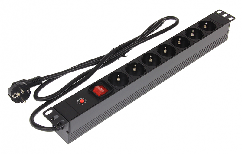 Enota za distribuiranje G10O07S je zanesljiva in kompaktna rešitev za napajanje naprav v 19" RACK omarah. Z višino 1U se enostavno vgradi v standardne omare, 7 univerzalnih (Schuko) vtičnic pa omogoča priklop različnih naprav. Opremljena je z vgrajenim stikalom za vklop/izklop in protipreobremenitveno zaščito, kar zagotavlja varno uporabo. 1,8-metrski napajalni kabel omogoča prilagodljivo postavitev.