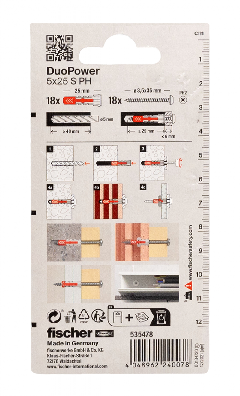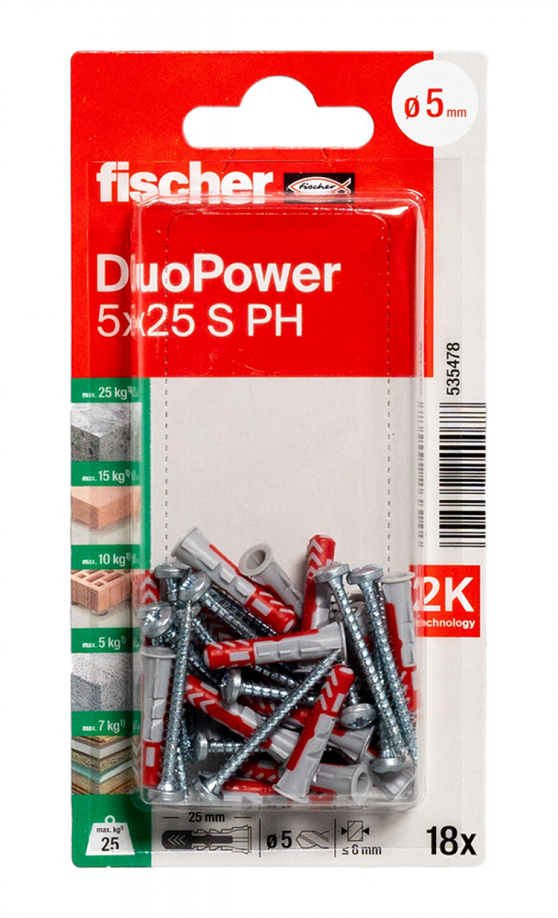 • Večja sidrna globina modelov DuoPower 6 x 50, 8 x 65 in 10 x 80 omogoča uporabo v votlih gradbenih materialih, poroznem betonu in za premostitev ometa.