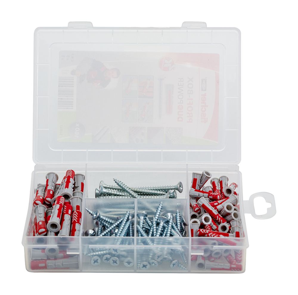 Zahvaljujoč prozornemu pokrovu in razdelkom je vsebina pregledna na prvi pogled – to prihrani čas in zagotavlja izbiro ustreznega pritrdilnega elementa.