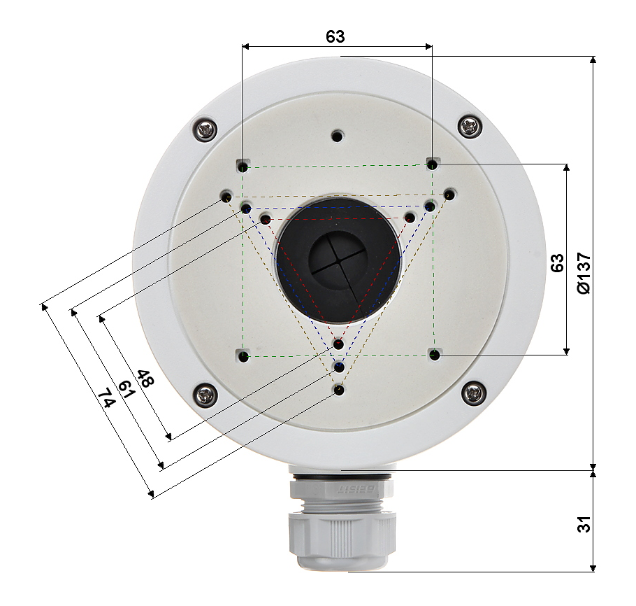 Nanj je možno montirati vandaloodporne kamere. Poseduje zelo koristno opcijo skritja kablov in konektorjev, potekajočih iz kamere.
