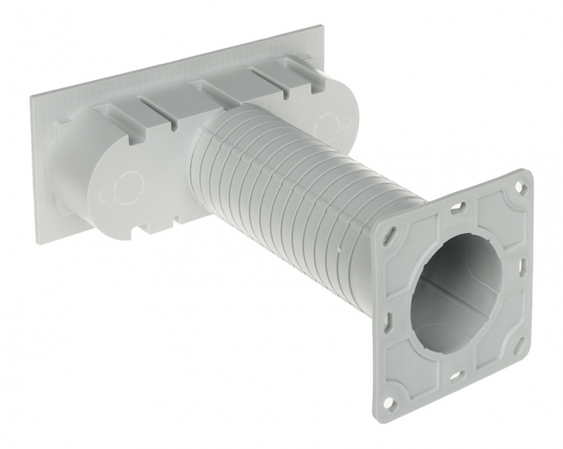 Električna inštalacijska škatla za namestitev naprav na izolirane fasade stavb debeline od 100 do 250 mm. Vzdržljiva konstrukcija. Odprava nastajanja toplotnih mostov.