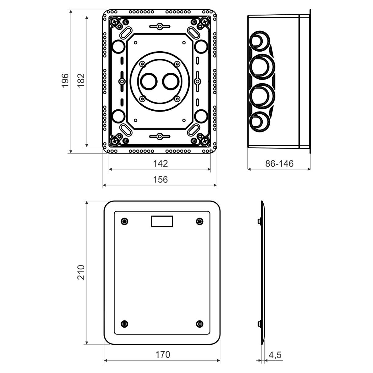 Namenjen za montažo na fasade s toplotno izolacijo debeline od 80 do 140 mm ali kot omarica pod omet.