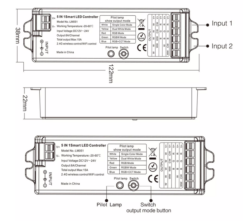 - Vhodna napetost: DC12V-24V