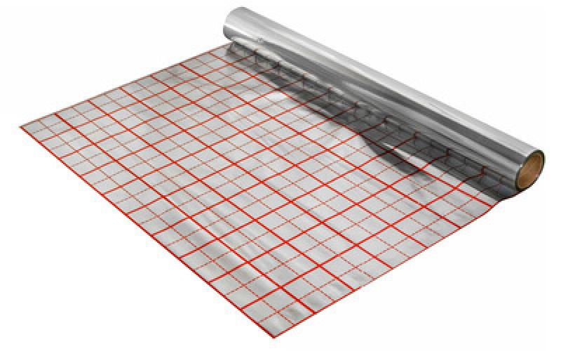 Posebna aluminizirana mrežna folija za talno izolacijo pri polaganju vodnega talnega ogrevanja.