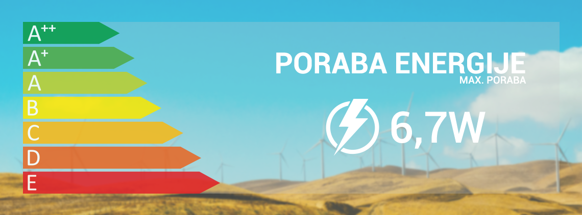 Poraba energije: Osnovna: 2.2 W (12 VDC), 3 W (PoE); Maks.: 6,7 W (12 VDC), 7,9 W (PoE) (H.265 + inteligenca vklopljena + DWDR + intenzivnost osvetljevalnika)