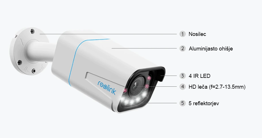 - Infrardeči nočni vid: Do 30 metrov (IR LED: 4 kosi / 28 mil / 850 nm)