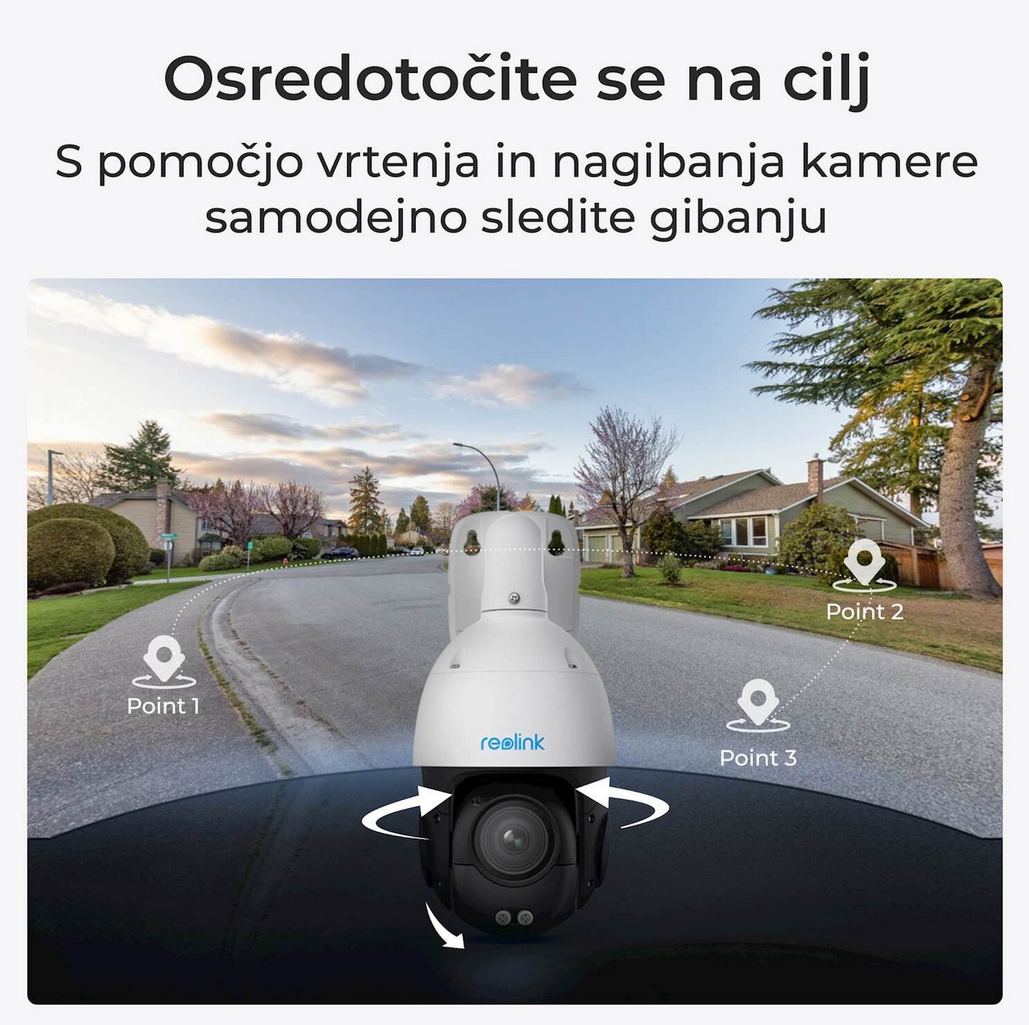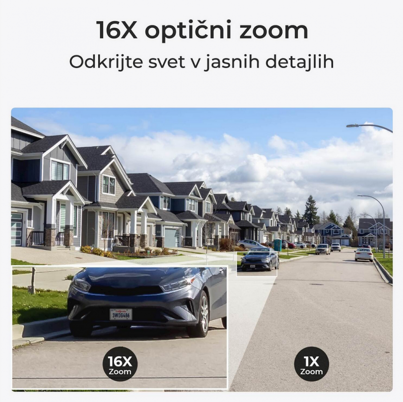 Spremljajte svoj dom v 4K jasnosti in podrobnostih ter spremljajte svojo okolico iz katerega koli kota s 360° panoramskim in 90° nagibom. 16-kratni optični zoom vam omogoča, da povečate poljubna področja, ne da bi pri tem žrtvovali kakovost slike. Infrardeči in barvni nočni vid zagotavljata izboljšano vidljivost v slabih svetlobnih pogojih. S pametnim zaznavanjem oseb, vozil in živali zmanjšuje lažna obvestila in zagotavlja, da ste takoj obveščeni o resničnih grožnjah. S samodejnim sledenjem kritični dogodki nikoli ne izginejo iz vidnega polja. S 16-kratnim optičnim zoomom lahko svobodno povečate za jasnejše podrobnosti tudi od daleč, ne da bi pri tem ogrozili jasnost. Pan-Tilt in samodejno sledenje Pomakne se za 355° in nagne za 90° za samodejno sledenje zaznani osebi ali ljubljenčku, tako da ne boste zamudili ničesar pomembnega. Prilagodljive možnosti shranjevanja Uživajte v prilagodljivosti več možnosti shranjevanja s podporo za kartice microSD do 256 GB, sisteme NVR in strežnike FTP, ki ustrezajo vašim posebnim potrebam in željam.