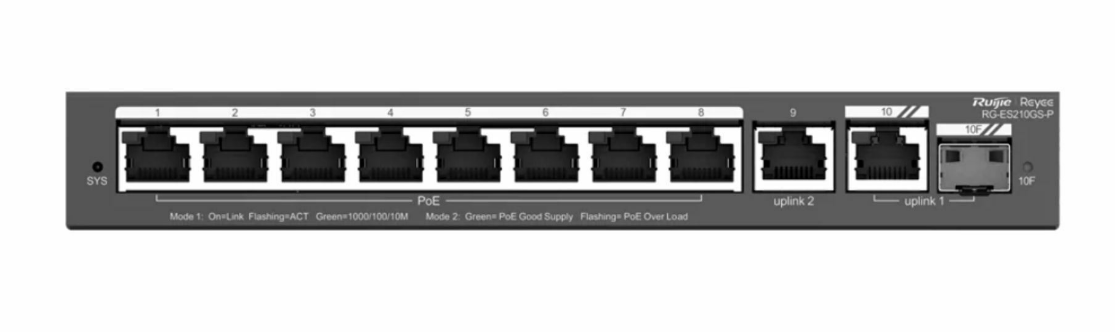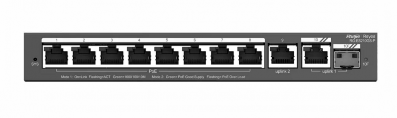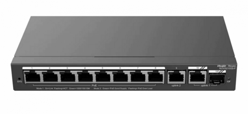 Ruijie 10-porto gigabitno stikalo s skupno močjo osmih PoE izhodov 120W je idealno za podjetja, gostinstvo, tovarne, izobraževalne ustanove, trgovine in nadzorne sisteme. Prednost je v upravljanju preko Ruijie Cloud platforme, ki vam omogoča enostavno optimizacijo in upravljanje stikala kjerkoli in kadarkoli. Zahvaljujoč avtomatskemu preprečevanju zank boste zagotovili nemoteno delovanje storitev, saj bo stikalo samodejno prepoznal in odpravil morebitne zanke v omrežju.