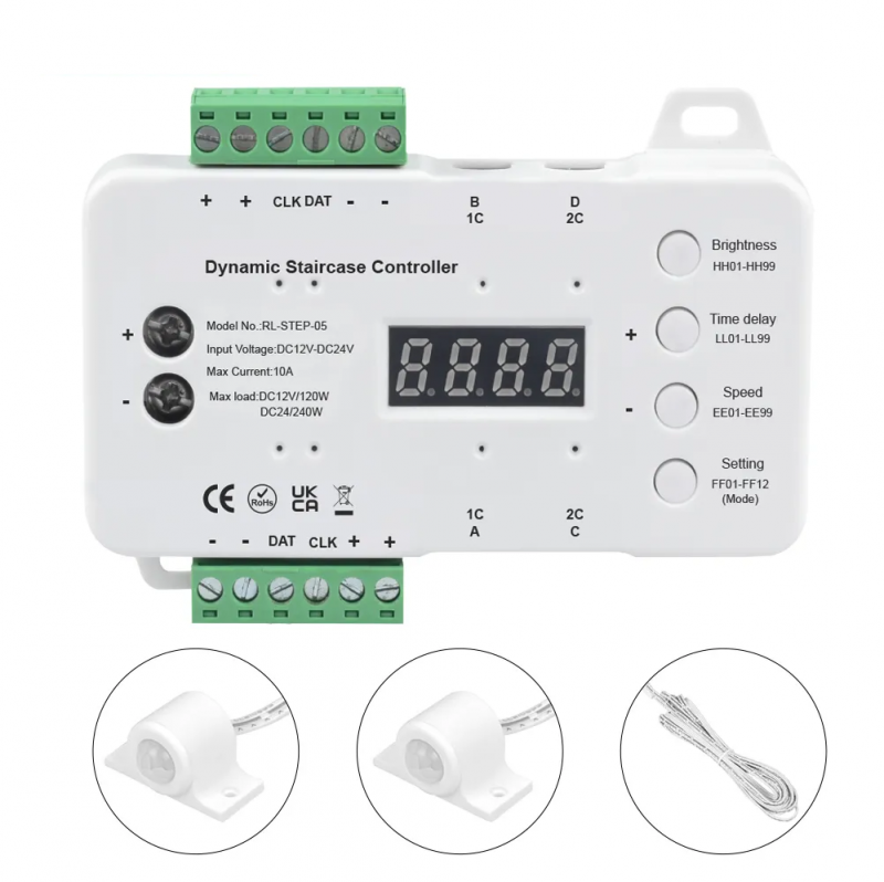 Krmilnik za do 16 stopnic / 4 različne hitrosti / 12 različnih načinov / Možnost zakasnitve / Možnost zatemnitve