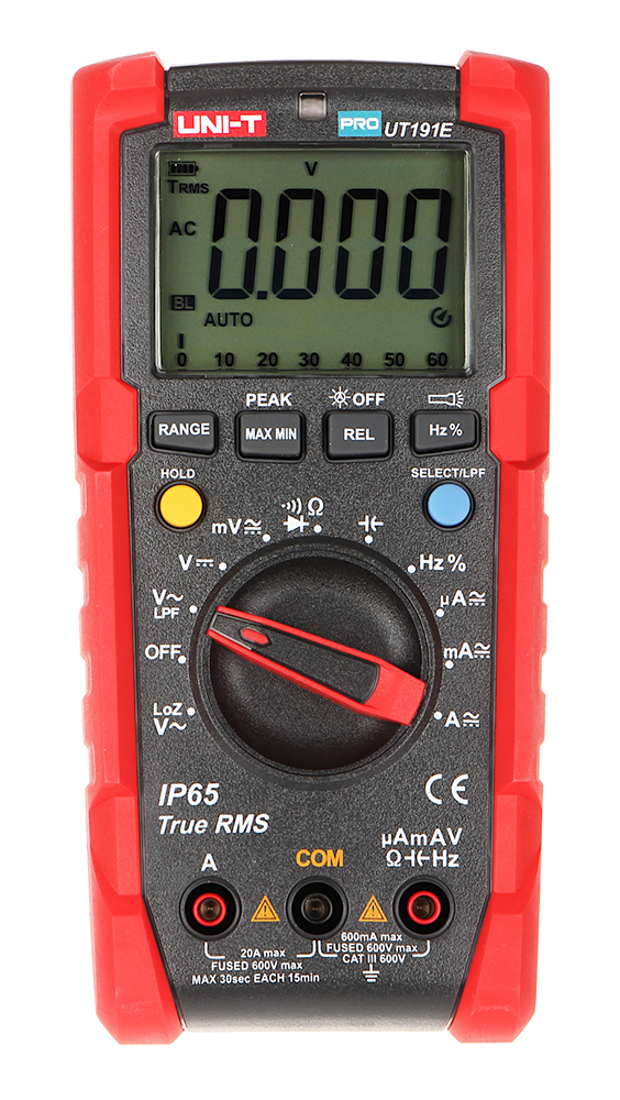 UT-191E je univerzalni digitalni merilnik, ki se uporablja za merjenje: napetosti, toka, upora, kapacitete, frekvence, ter za preverjanje pravilnosti delovanja diod. Merilnik ima funkcijo samodejnega spreminjanja merilnih območij ter tudi relativnega merjenja.