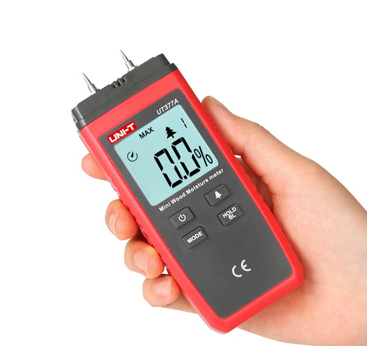 UT377A je digitalni merilnik, namenjen merjenju vsebnosti vlage v lesu, papirju, vezanem lesu in drugih lesenih materialih. Ta naprava razvršča les v štiri kategorije glede na gostoto materiala in uporablja algoritem temperaturne kompenzacije za zagotovitev natančnosti merjenja. Miniaturna zasnova UT377A, majhna poraba energije in visoka natančnost so odlična izbira za merjenje vsebnosti vlage v lesu.